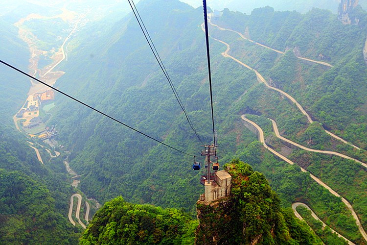 線路特色:乘世界最長高山客運索道、走鬼谷玻璃棧道、游天界佛國天門山寺、體驗天下第一公路奇觀“99彎通天大道”